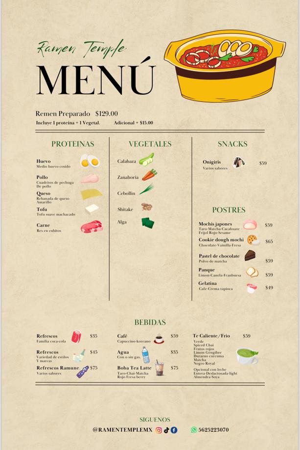 Nestled in the heart of Roma Norte, Mexico City, Ramen Temple shines as a welcoming haven for noodle lovers. The menu showcases a delightful array of authentic ramen options, including flavorful vegan varieties, ensuring that everyone can indulge. Highlights include the simple yet satisfying Japanese miso ramen with a perfectly cooked half egg and fresh vegetables like zucchini, appealing to those seeking comfort food.